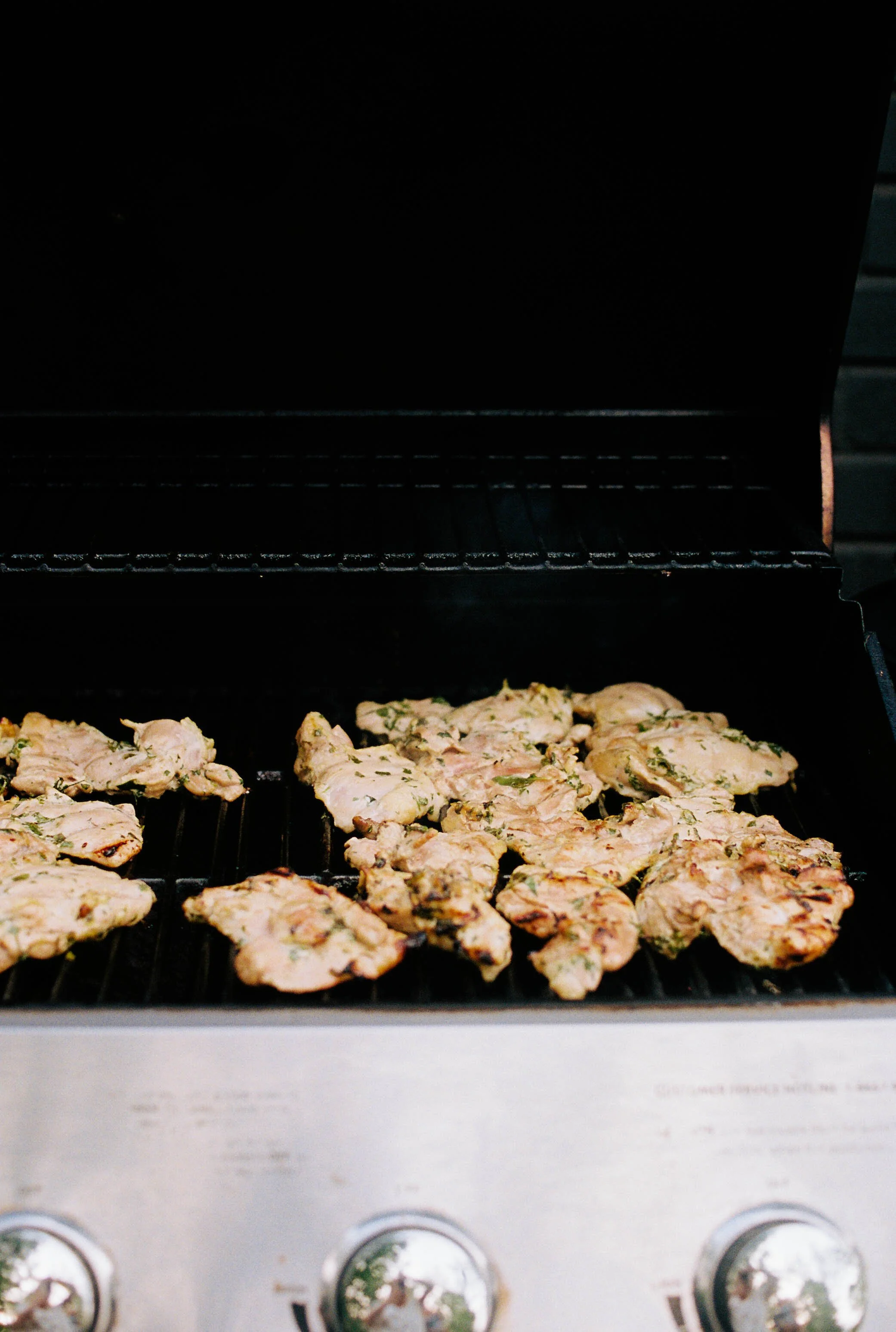 Preheat grill to 400°F. Oil the grates lightly. Grill chicken for 5–6 minutes per side, until internal temp reaches 165°F. Let rest 5 minutes.